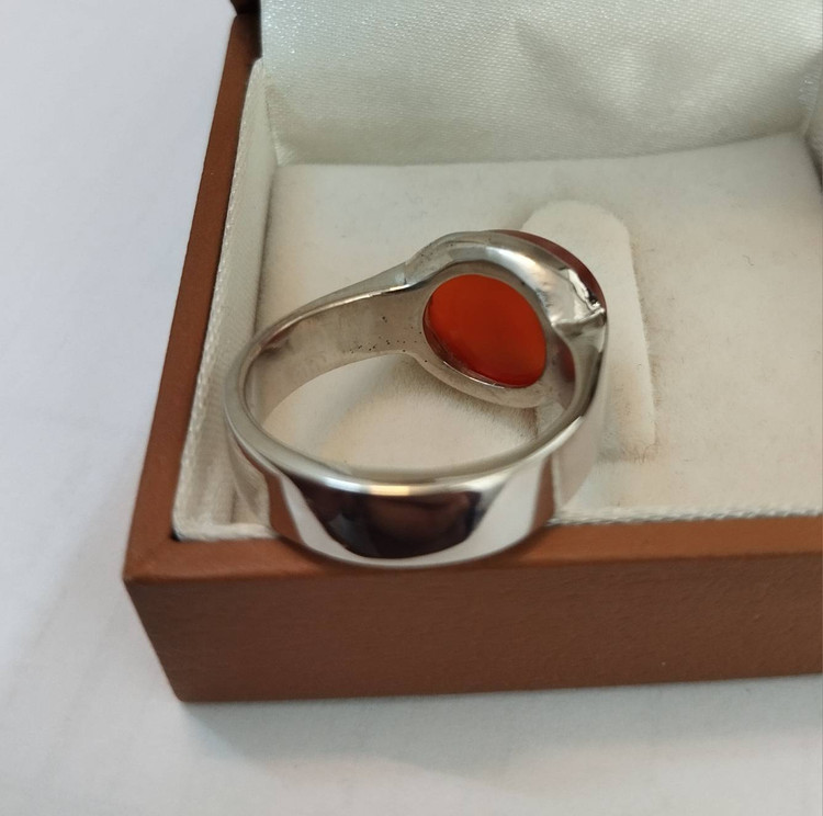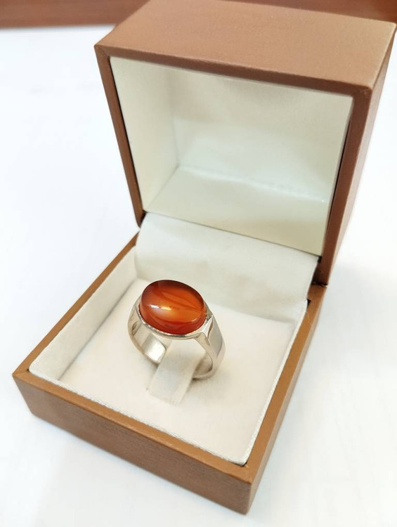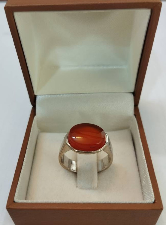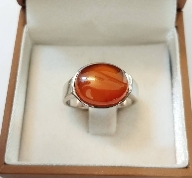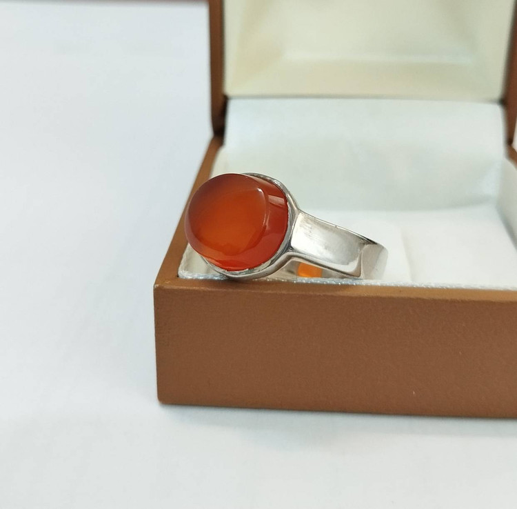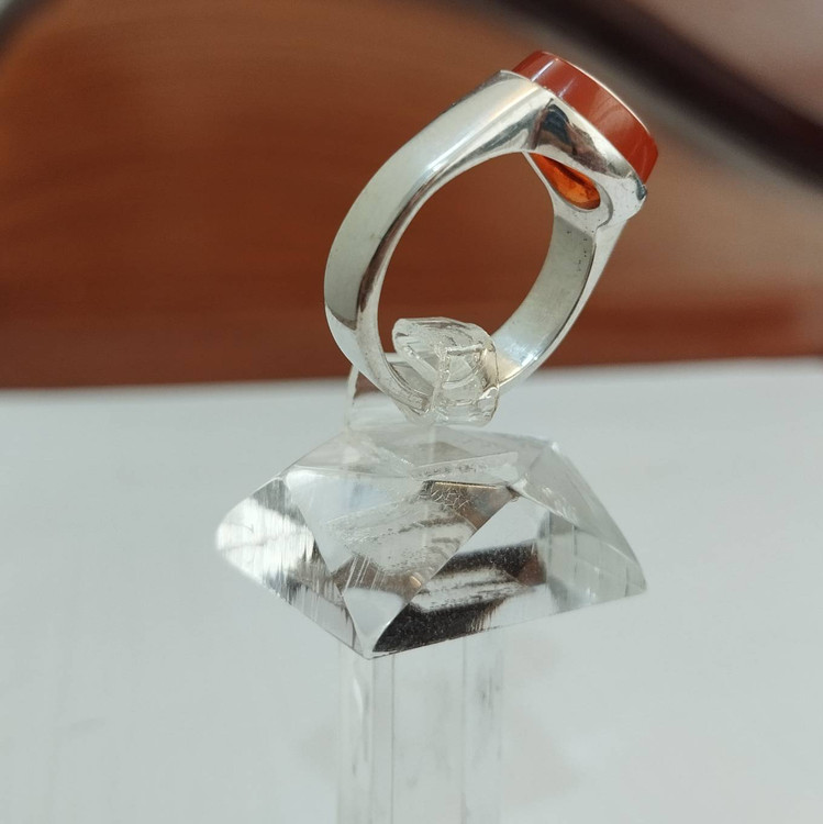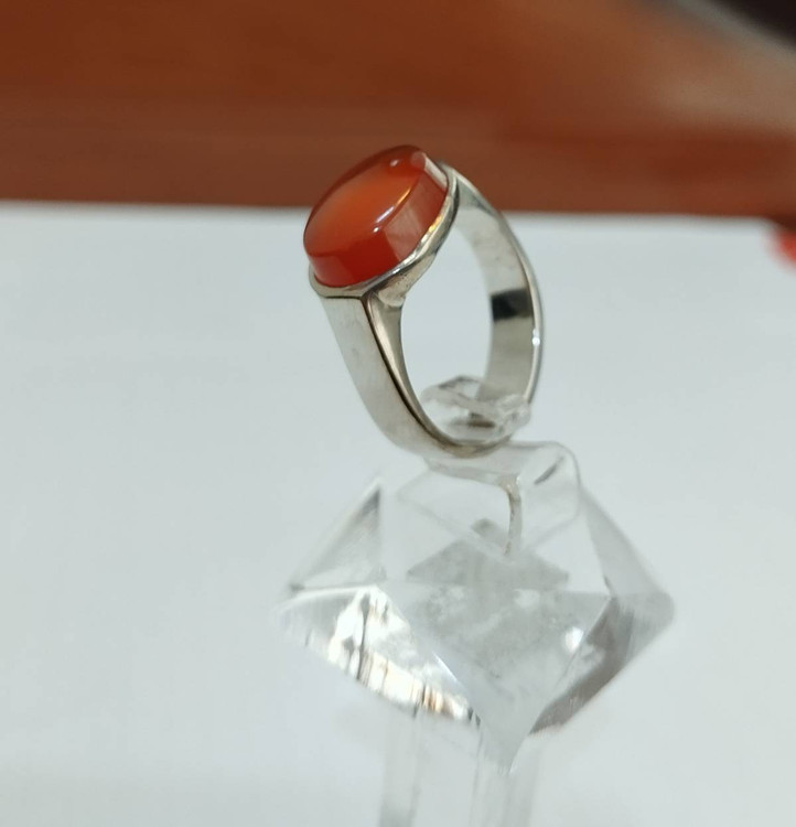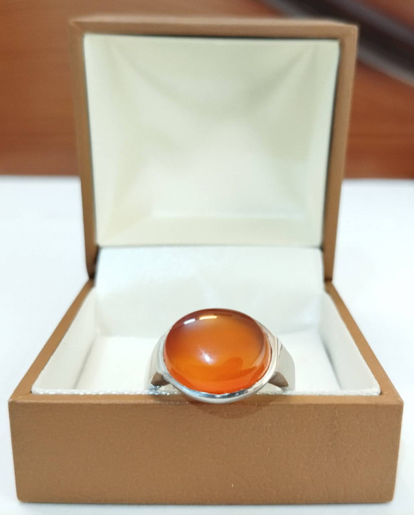 انگشتر عقیق پرتقالی عسلی یمانی خوشرنگ با رکاب دستساز اسپرتی جلال مشهد(کد ۲۸)
